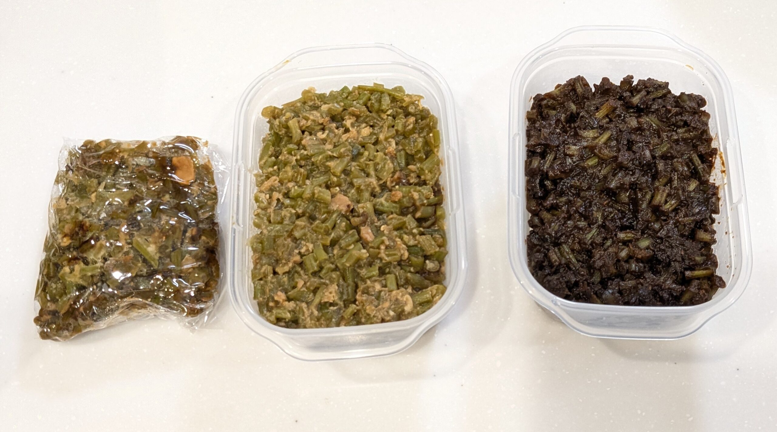 保存食なので冷蔵庫でも1〜2周間もちますが、少しずつ使うものなので、この期間では使いきれません。そこで、冷凍庫で保存しました。味噌は冷凍庫でもカチコチにはならないので、少しずつ使う場合でも、冷凍で大丈夫なんです。これでしばらくは芋がら味噌が楽しめます(^_^)。