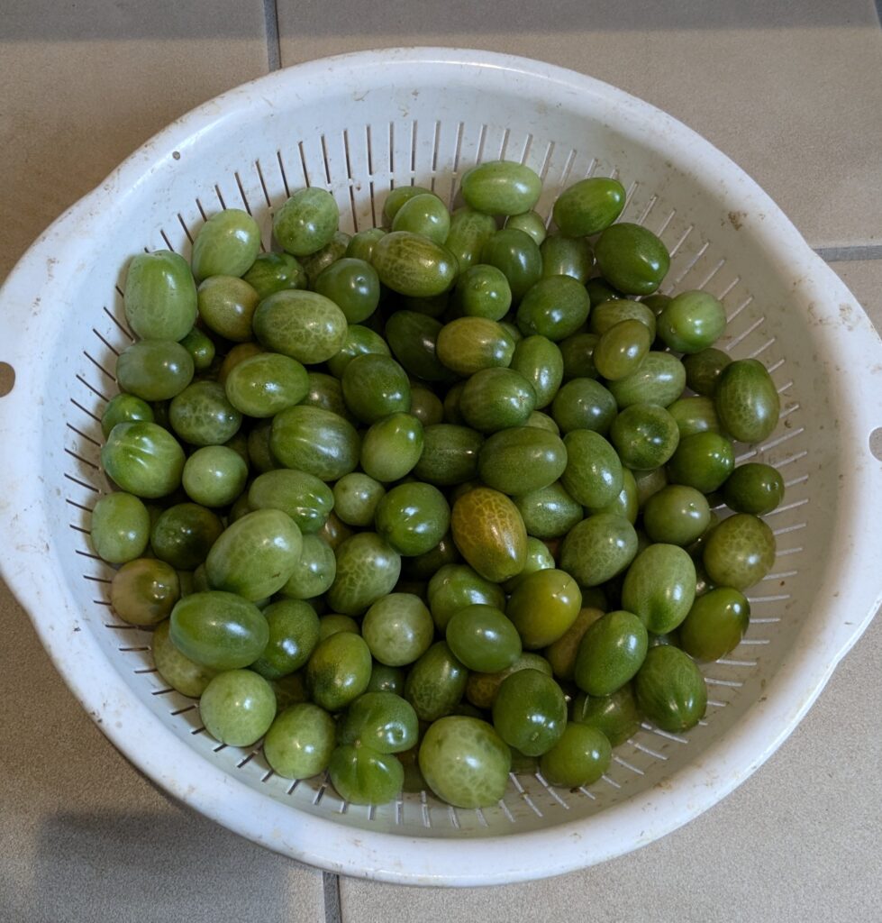 もう12月になっているのに、これだけの実が収穫できたのだから、これはこれでありがたいことです。これらを今すぐ使うとしたら、ピクルスにするのが良いです。アクが抜けて、美味しく食べられるようになります。一部は今週末にそうしたいと思います。